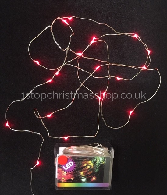 Containing twenty red bulbs attached to a thin flexible copper string. These versatile battery operated lights are just perfect for all your indoor displays. To activate, just place two AA batteries (alkaline style recommended) in the battery pack, close the cover, move the black switch and your lights are ready for action! A gentle move of the black switch is all that’s needed to switch your lights off.