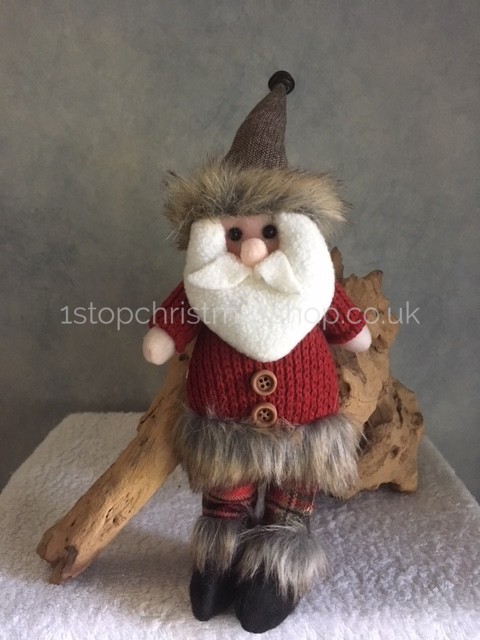 Sitting Dangly Legged Rustic Santa – Plush Christmas Decorative Figurine